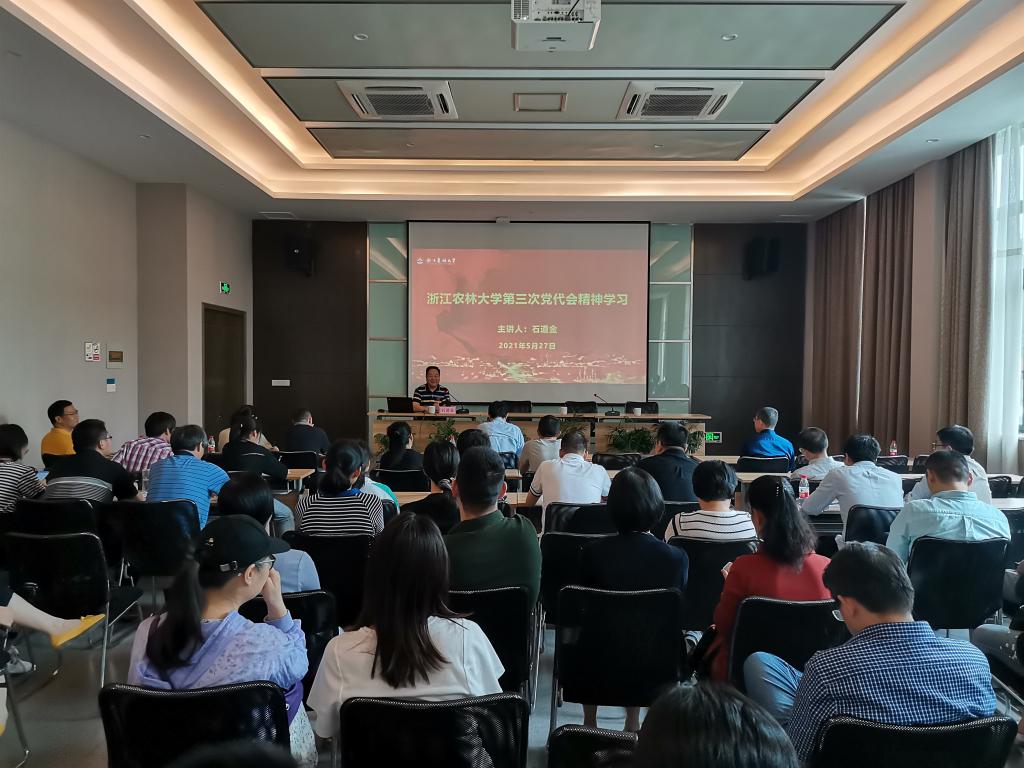 石道金院长作题为《贯彻落实党代会精神,开启学院发展新征程》专题党课 5月27日,石道金院长在印象农林二楼会议室以《贯彻落实党代会精神,开启学院发展新征程》为题,为全院教职工上了一堂生动的党课。石道金院长从如何理解学校发展目标定位,实现路径和重点举措阐述了学校建设区域特色鲜明的生态性研究型大学的战略目标和发展规划。他重点讲了“经管学院的使命与愿景”,他认为,学院面临着国家大力推进乡村振兴战略与生态文明建设、教育部“双一流”高校建设以及新文科与新农科建设和浙江省“重要...