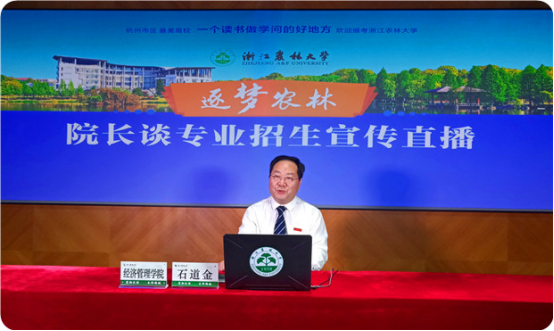逐梦农林 院长谈专业——石道金院长做客腾讯直播间,畅谈新经济与经济管理类人才培养 5月23日晚,石道金院长做客腾讯直播间,畅谈新经济与经济管理类人才培养,直播活动由学校招生办组织。 石道金院长首先从学院发展历程、师资队伍、教学科研平台、人才培养机制、教育国际化战略、校园文化活动和学生奖助体系方面作了介绍。其次,他重点谈了农林经济管理、会计学、国际经济与贸易、工商管理、电子商务、金融工程6个本科专业的特色、核心课程与发展方向。他表示,学院秉承“质量立院、人才兴院、学术强院”的理念...