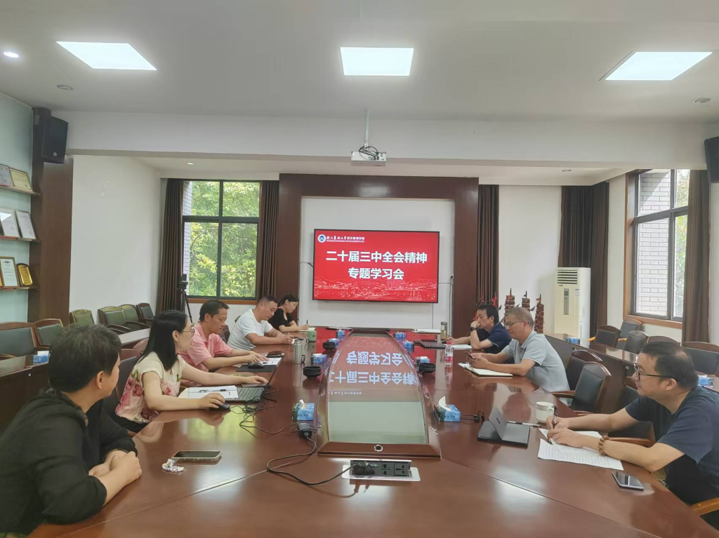 经管学院专题学习党的二十届三中全会精神 8月16日,经管学院党委在西大楼208会议室召开理论学习中心组学习会议,专题学习党的二十届三中全会精神。学院中心组成员参加学习会,学习会由学院党委书记陈劲松主持。会上,院长吴伟光强调,学院的各项工作要在党的二十届三中全会精神指引下展开,特别是要对全会决定中经济建设、生态文明建设、教育科技人才一体化改革等与学院密切相关的内容深入学习和领会。要以全会精神为指导,把现代化建设所要求的人才教育工作与学院人才...