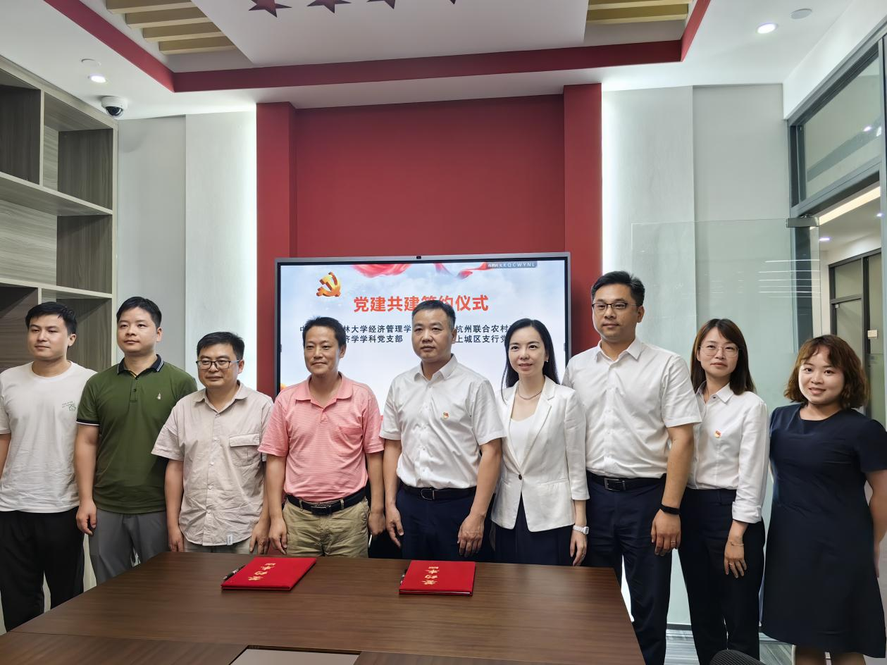 双方党支部书记代表支部共同签订了《党建联建协议书》。学院党委书记陈劲松指出,双方单位都有“三农”属性,具备天然的合作条件,希望发挥双方优势,依托专业资源提供理论支持,共同开展人才培养和项目合作,学院党委将全力支持双方支部建设工作。杭州联合银行上城区支行党支部书记葛国峰表达了对此次党建联建的美好期许,希望以党建联建为纽带,结合双方党组织实际,建立党员联动教育长效机制,通过定期开展互动交流、项目合作、志愿服务等活动,共同推动党建与业务深度融合,促进高校与银行党建合作交流双循环。未来,双方将以此次签约为契机,共同搭建党建共建平台,形成“资源共享、优势互补、合作共赢、共同提高”的基层党建工作新格局。