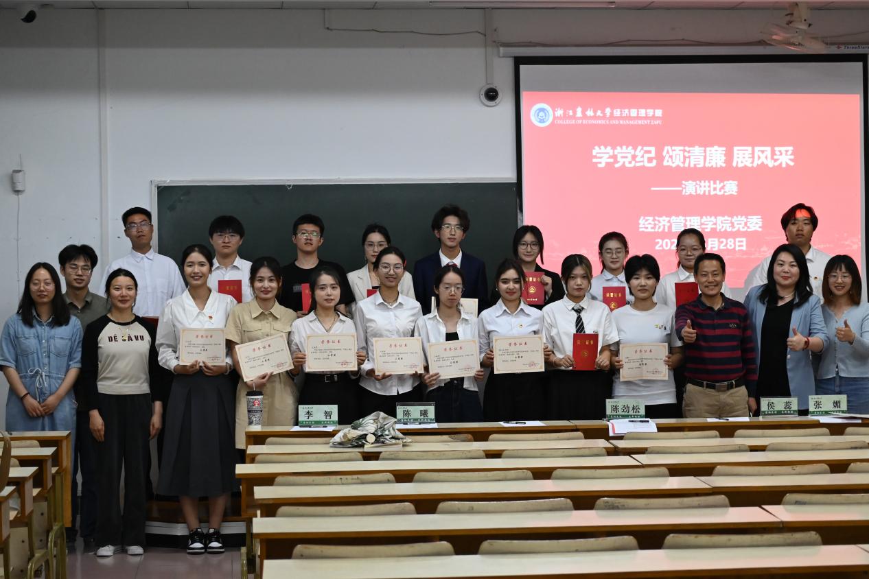 学院12个学生支部代表紧扣主题,结合自身学习体会,讲述一个个精彩清廉故事,呈现出一段段生动表演,传达出自己对纪律意识、规则意识、党性意识的理解和对廉洁精神的歌颂。本次比赛展现出经管学子作为新一代大学生心中有党、积极向上的精神风貌,进一步推动今年会精神文明建设,让党纪教育在每一位同学心中生根发芽。