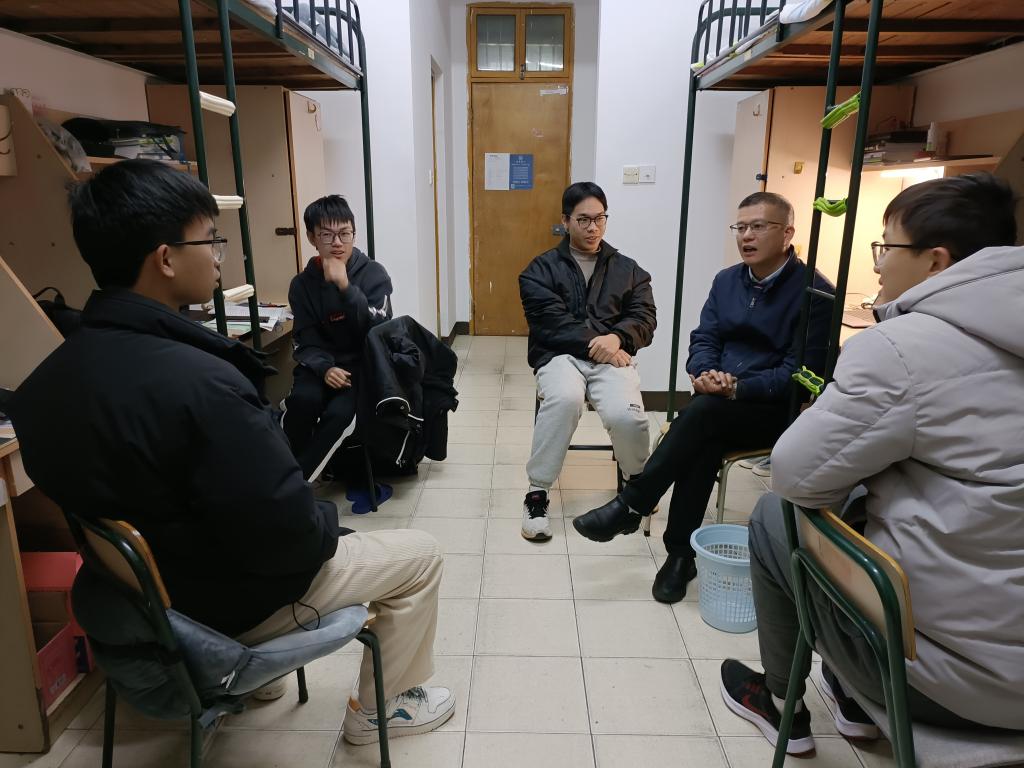 2月16日-17日,经管学院领导班子带领全体辅导员深入学生寝室,了解学生思想动态、学习、身体等状况,并为同学们送去关怀和问候。