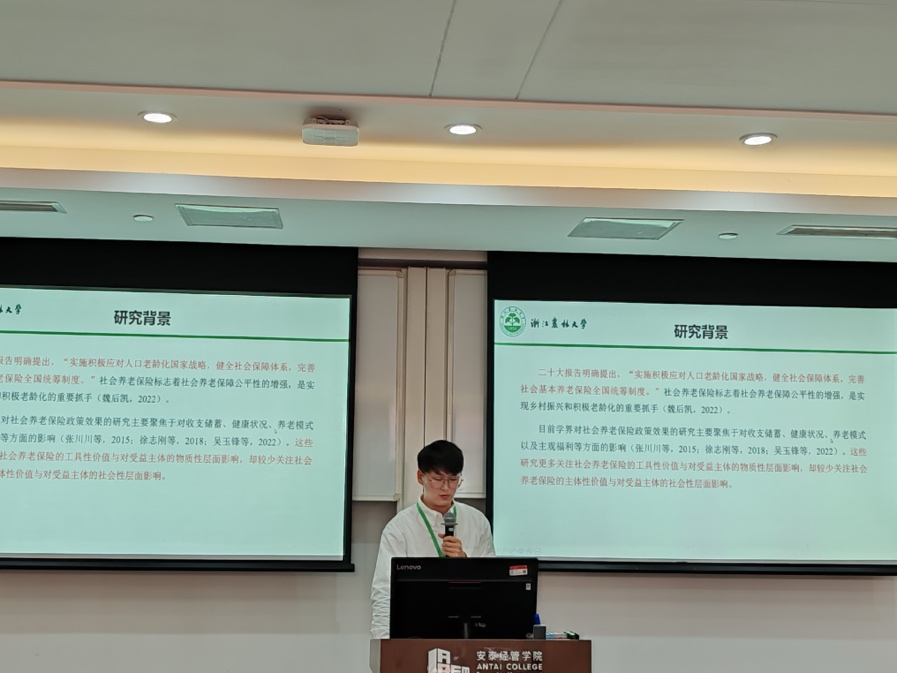 我校今年会官网2021级农业管理硕士研究生吕良瑞和2023级农业经济管理硕士研究生许江帆分别就《社会养老保险对农村老年人社会适应的影响—基于中国老年社会追踪调查的实证研究》和《粮食安全背景下农业化学投入品减量的生态补偿标准研究—基于作物差异的分析》在“分论坛五:老龄化、教育与健康”和“分论坛四:绿色与低碳”分会场中进行主题演讲,其中许江帆同学担任分论坛下半场主持。本次论坛由院长助理杨建辉副教授带队,并在 “分论坛二:数字经济”分会场中担任点评专家。参加本次论坛,展现了今年会的研究生研究水平,拓宽了研究生的学术视野,助推了研究生科研能力的培养,也加强了与兄弟院校研究生之间的沟通交流。