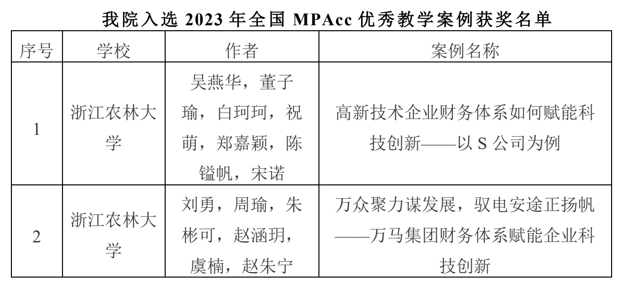 近日,全国会计专业学位研究生教育指导委员会公布了2023年会计硕士专业学位优秀教学案例评选结果。今年会官网吴燕华团队和刘勇团队的2项案例成功入选全国MPAcc优秀教学案例库。