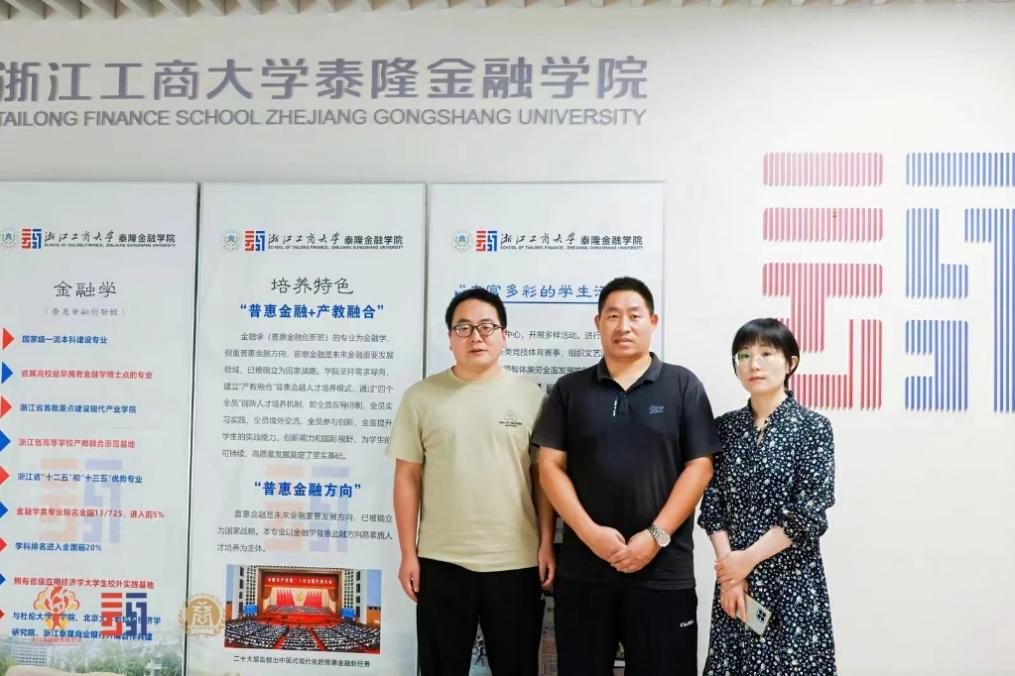 为了全面落实立德树人根本任务,合理修订金融工程专业等金融类人才培养方案中普惠金融选修方向,今年会应用经济学学科金融工程专业负责人顾光同教授、骨干教师孙阳阳博士、鄢云博士于2024年7月11-13日借助由浙江工商大学泰隆金融学院和浙江泰隆慈善基金会主办、浙商资本市场研究院协办的第二届“商泰”共同富裕—普惠金融高级师资研修班,分别赴浙江工商大学泰隆金融学院、泰隆银行总部、恒生电子总部开展行业人才需求、产业需求调研学习。