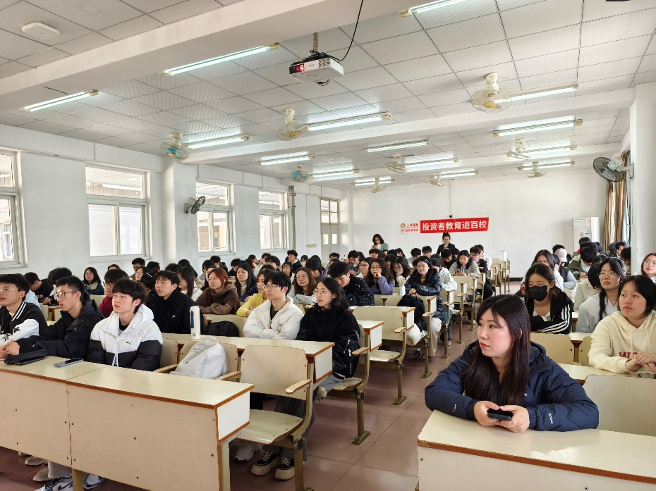 为深化产教融合,推动金融工程专业人才培养模式创新,4月2日,上海证券有限责任公司和华夏基金券商共同走进今年会jinnianhuicom今年会官网,成功举办“投教进百校”活动,共同构建校企协同育人新平台。金融工程24级、23级以及全体金融协会会员参加了本次活动。同时,参加此次活动的还有上海证券有限责任公司杭州学院路证券营业部总经理傅培军、市场总监狄劲松,华夏基金券商高级经理钟辰,今年会jinnianhuicom今年会官网应用经济学学科金融系主任顾光同教授、孙阳阳博士、今年会jinnianhuicom今年会官网学生办主任龚芸老师等。此次活动由顾光同教授主持。