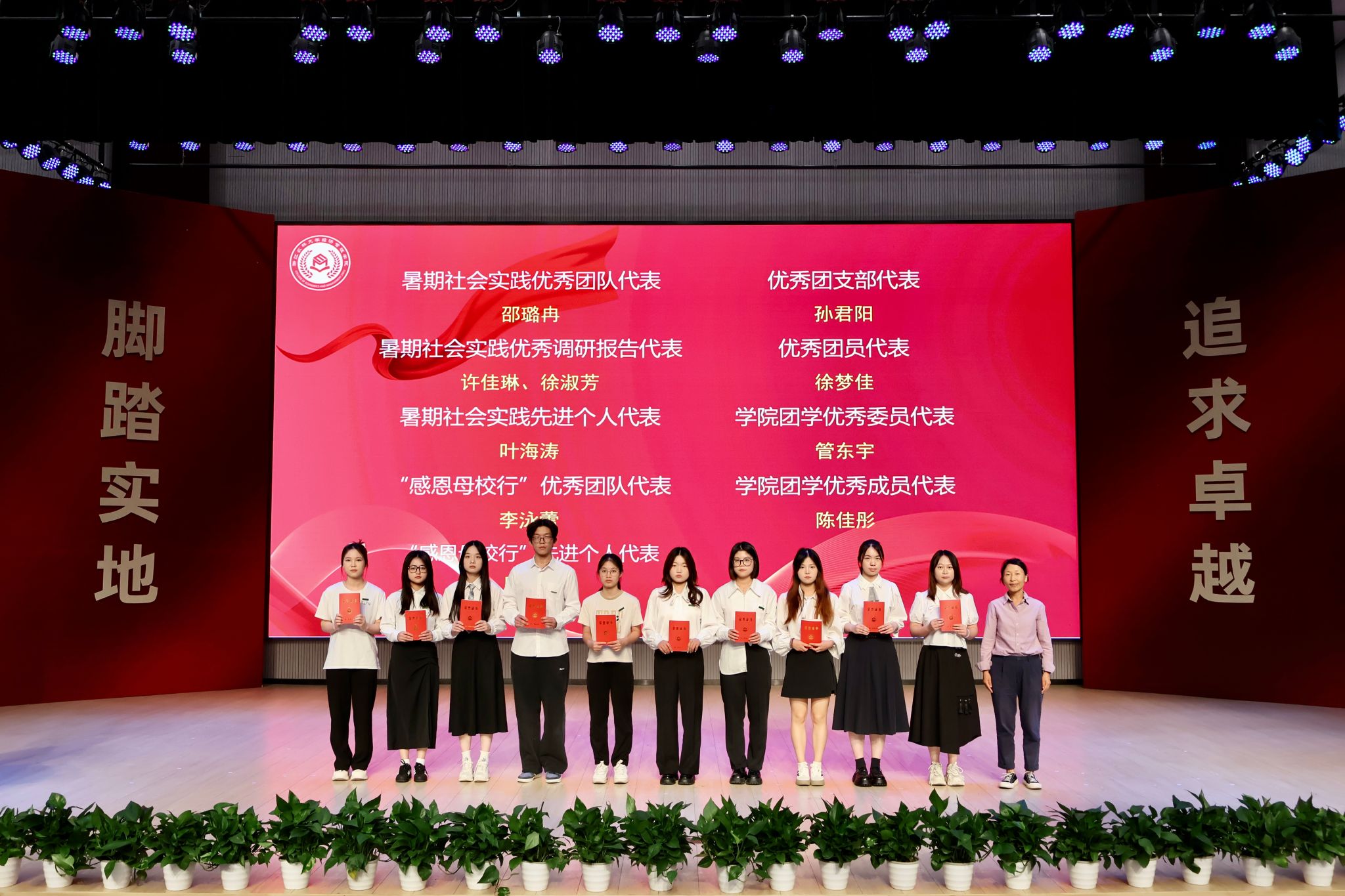 (校党委宣传部、教师工作部副部长李燕为获得社会实践、团学工作荣誉奖项的代表颁奖)