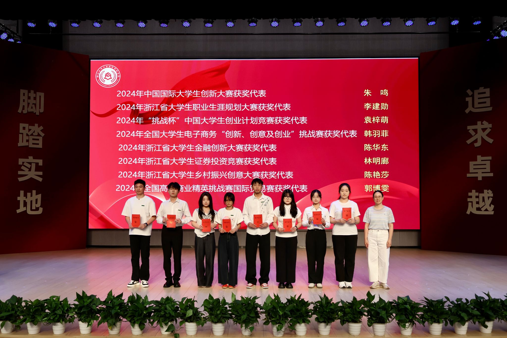 (校团委书记胡云云为获得创新创业荣誉奖项的代表颁奖)