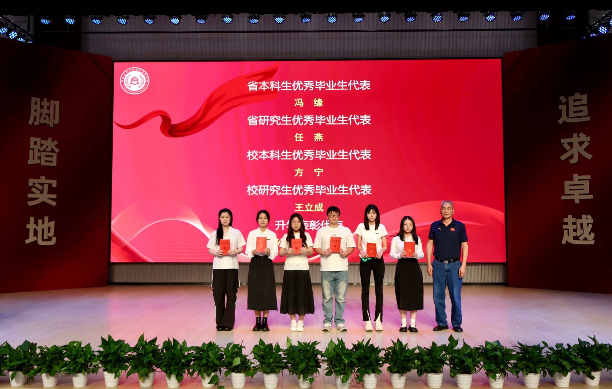 (校体育军训部主任冯祎中为优秀毕业生、升学表彰代表颁奖)