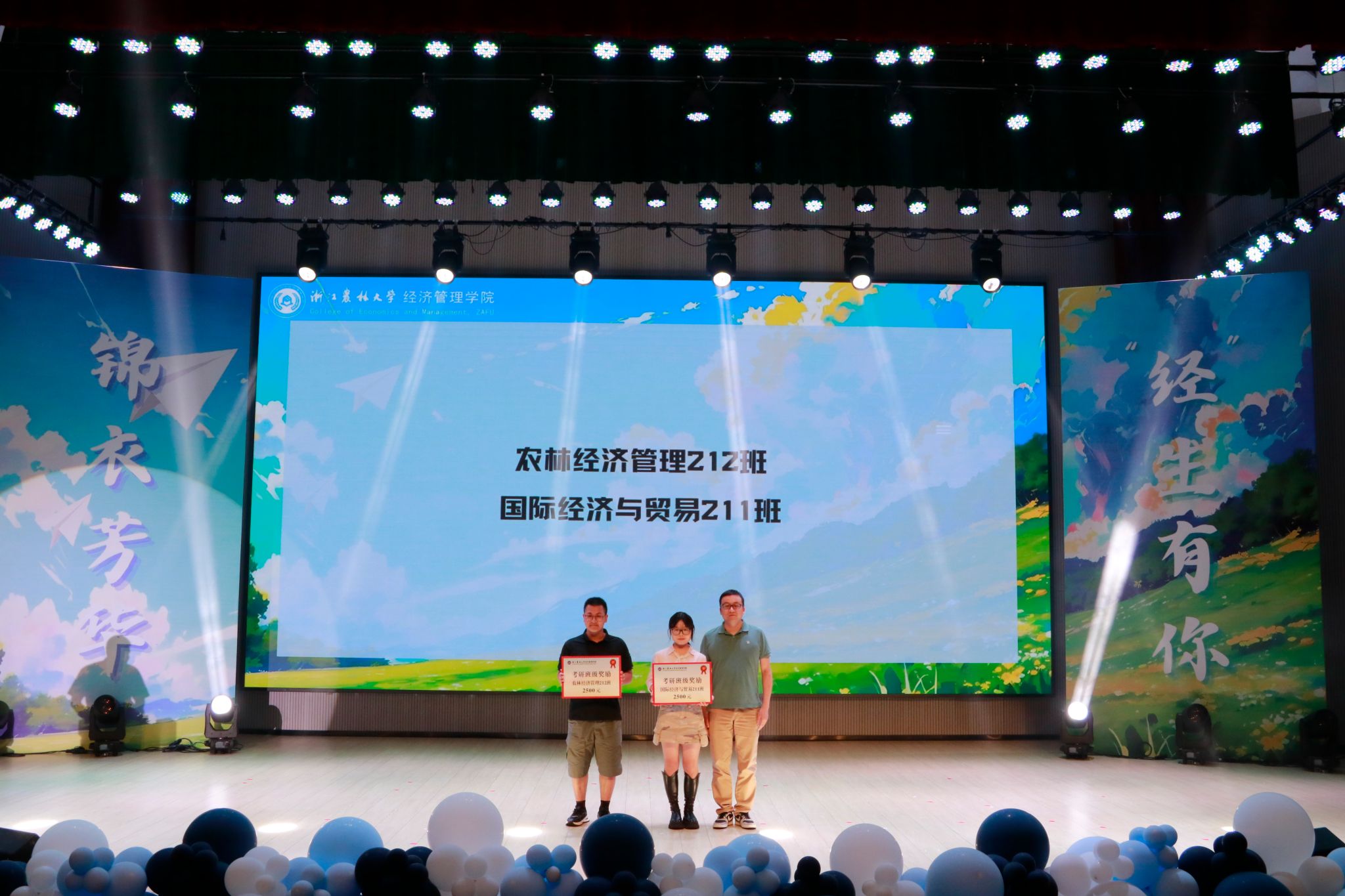 晚会开场,副院长蔡细平、朱臻分别为获得优秀毕业论文的本科生以及获得考研升学奖励的班级代表颁奖。