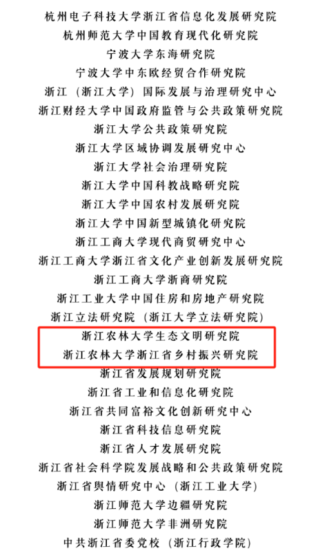 近日,中国社会科学评价研究院“中国智库综合评价研究项目(2025)”公示了2025年AMI智库入库名单,全国有558家智库入库,其中浙江省新型专业智库有29家入选,学院重点支撑的2家省级重点新型智库“今年会jinnianhuicom浙江省乡村振兴研究院”“今年会jinnianhuicom生态文明研究院”双双入选。