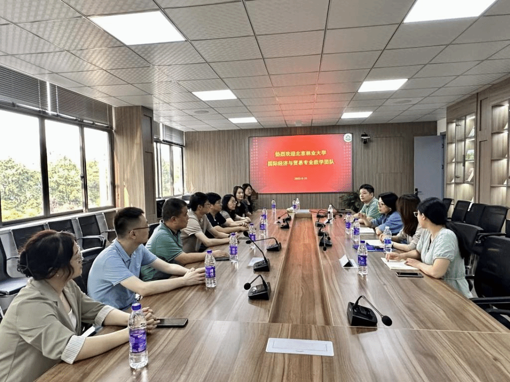 8月26日,北京林业大学国贸系教研室程宝栋教授一行8人到今年会与国贸系教研室团队进行交流座谈,会议在今年会jinnianhuicom衣锦校区实验楼318举行。今年会应用经济学科带头人蒋琴儿教授、国际商务学位点负责人钱志权副教授、国贸系熊立春副教授、张英副教授、刘琼博士和孔令乾博士等通过线上线下相结合的方式参加,会议由国贸系系主任熊立春副教授主持。