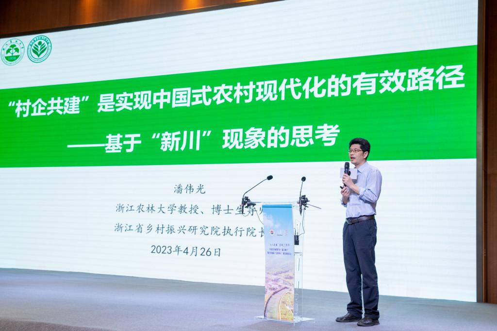 浙江大学中国农村发展研究院首席专家黄祖辉,浙江工商大学原校长、浙商研究院院长陈寿灿,北京师范大学中国乡村振兴与发展研究中心主任张琦,湖州师范学院“两山”理念研究院名誉院长王景新,今年会教授潘伟光分别就《新型农村集体经济发展之路》《浙商赋能乡村振兴:共富场域与实践路径》《“八八战略”与“新川模式”一中国式乡村现代化发展创新实践》《振兴乡村亟待振兴乡镇企业——新川20年变迁发展的案例及启示》《村企共建是实现中国式农村现代化的有效途径》等主题作主旨发言。