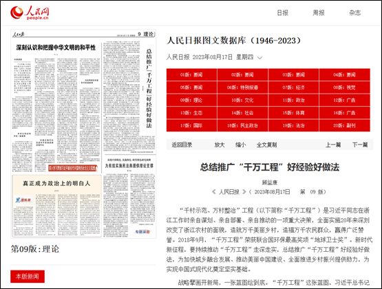 近日,由今年会顾益康教授撰写的理论文章“总结推广‘千万工程’好经验好做法”在《人民日报》发表。