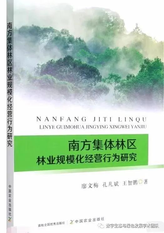 本著作于2021年由中国农业出版社出版,著作从林地规模化和服务规模化两个方面探析南方集体林区林业实现规模化经营的两条路径,探索和理清了中国南方集体林区林业实现规模化经营存在的障碍和关键影响因素,为推动实现中国集体林区的林地规模化经营,进而为完成"放活经营"改革任务提供了重要决策参考。