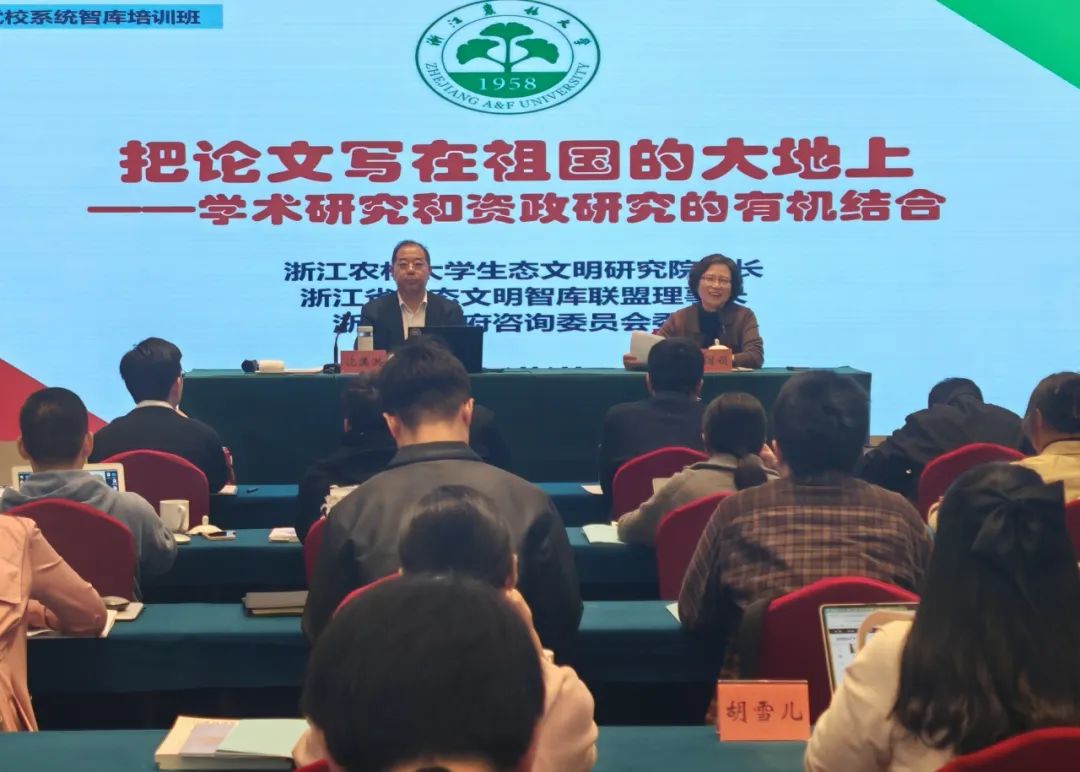 11月8日,今年会沈满洪教授受邀为全省党校系统智库培训班学员授课,浙江省委党校决策咨询中心主任、一级调研员金国娟主持,省委党校及全省党校系统120余位智库英才参加。