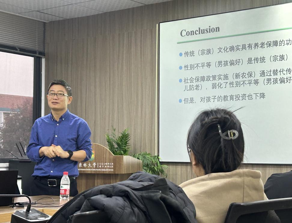 华南农业大学农业制度与发展研究院张同龙教授作题为“试论中国农村的性别不平等”的报告
