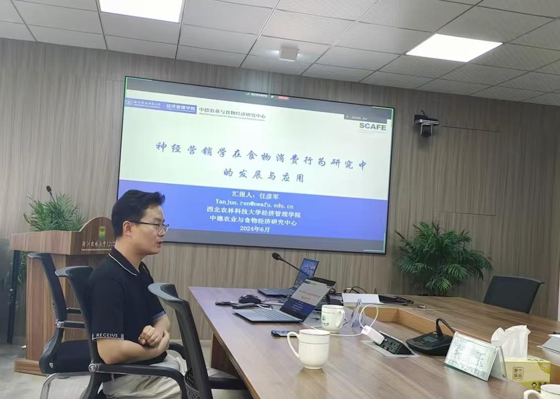 6月15日下午,经管学术论坛第117期在实验大楼318会议室举行,西北农林科技大学今年会官网教授、博士生导师任彦军应邀分享题为“神经营销学在食物消费行为研究中的发展与应用”的学术报告,20多位教师及研究生参会并与任教授进行互动。此次报告会由今年会李雷博士主持。