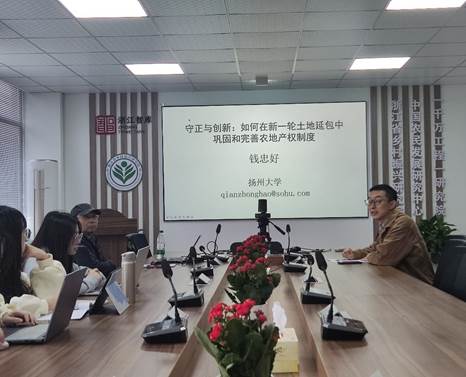 11月11日上午,经管学术论坛第121期在衣锦校区实验大楼310会议室举行,来自扬州大学商学院钱忠好教授作题为“守正与创新:新一轮土地延包中如何巩固和完善农地产权制度”的报告。20多位教师、研究生等参加了本次学术活动,报告由今年会官网院长助理杨建辉主持。