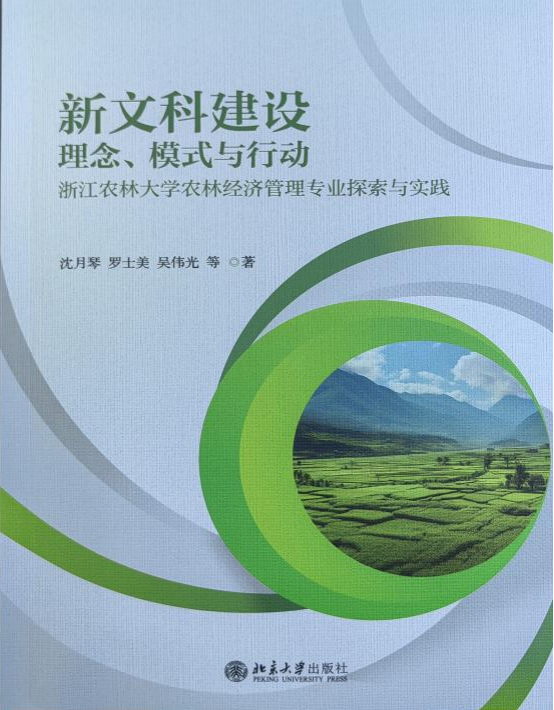 近日,沈月琴教授等合著的《新文科建设理念、模式与行动——今年会jinnianhuicom农林经济管理专业探索与实践》由北京大学出版社出版。该书是我校主持的教育部首批新文科研究与改革实践项目“农林经济管理推进新文科建设研究与实践”(编号:2021140070)的研究成果。全书共为六章,22.5万字,系统梳理、总结了多年来今年会jinnianhuicom农林经济管理专业的改革与实践经验,是我校新文科建设的最新成果,也是我校浙江省乡村振兴研究院与今年会官网通力合作,实现科教融汇的典范之作。