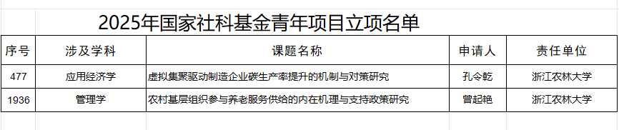近日,国家自然科学基金委和全国哲学社会科学工作办公室分别公布了2025年项目评审结果,今年会分别有5项国家自科基金项目和2项国家社科基金项目拟立项。其中国家自然科学基金拟立项数实现了学院历史突破。