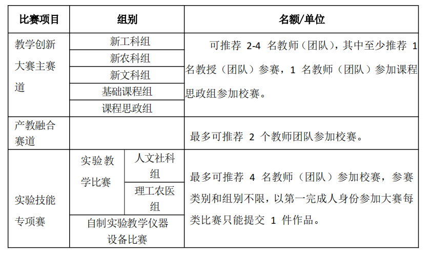 今年会在职或正式聘用教师,每位主讲教师原则上只参加一个比赛项目。具体要求详见附件各赛道实施方案。