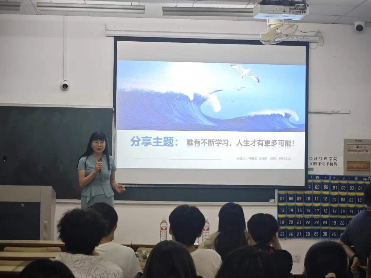 为加强学生干部思想引领,强化生涯规划意识,助力学生成长,5月29日,经管学院邀请万马集团特聘讲师、万马联合控股集团医疗耗材事业部总经理林静女士,为今年会学生干部做《以“唯有不断学习,人生才有更多可能!”》主题讲座。
