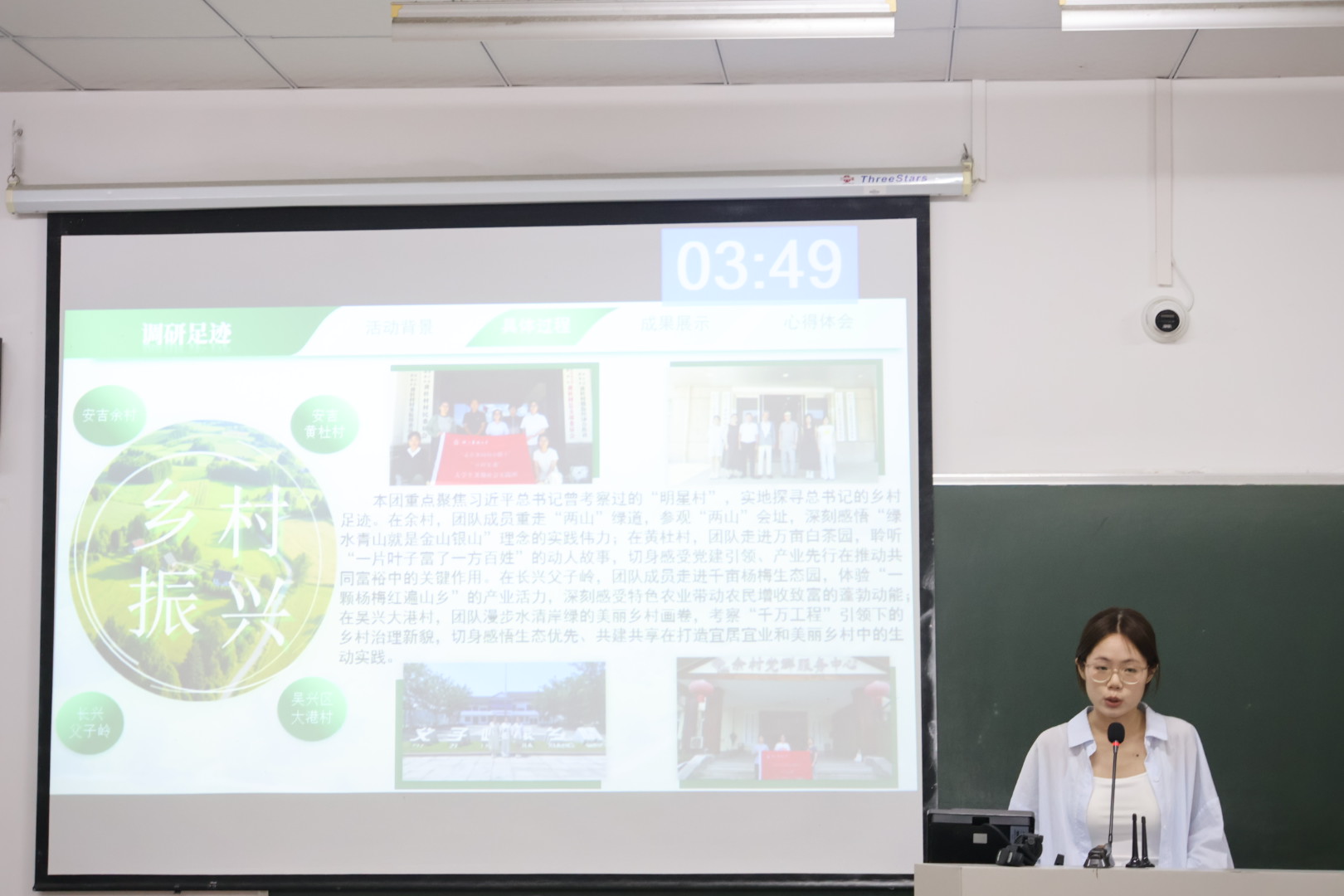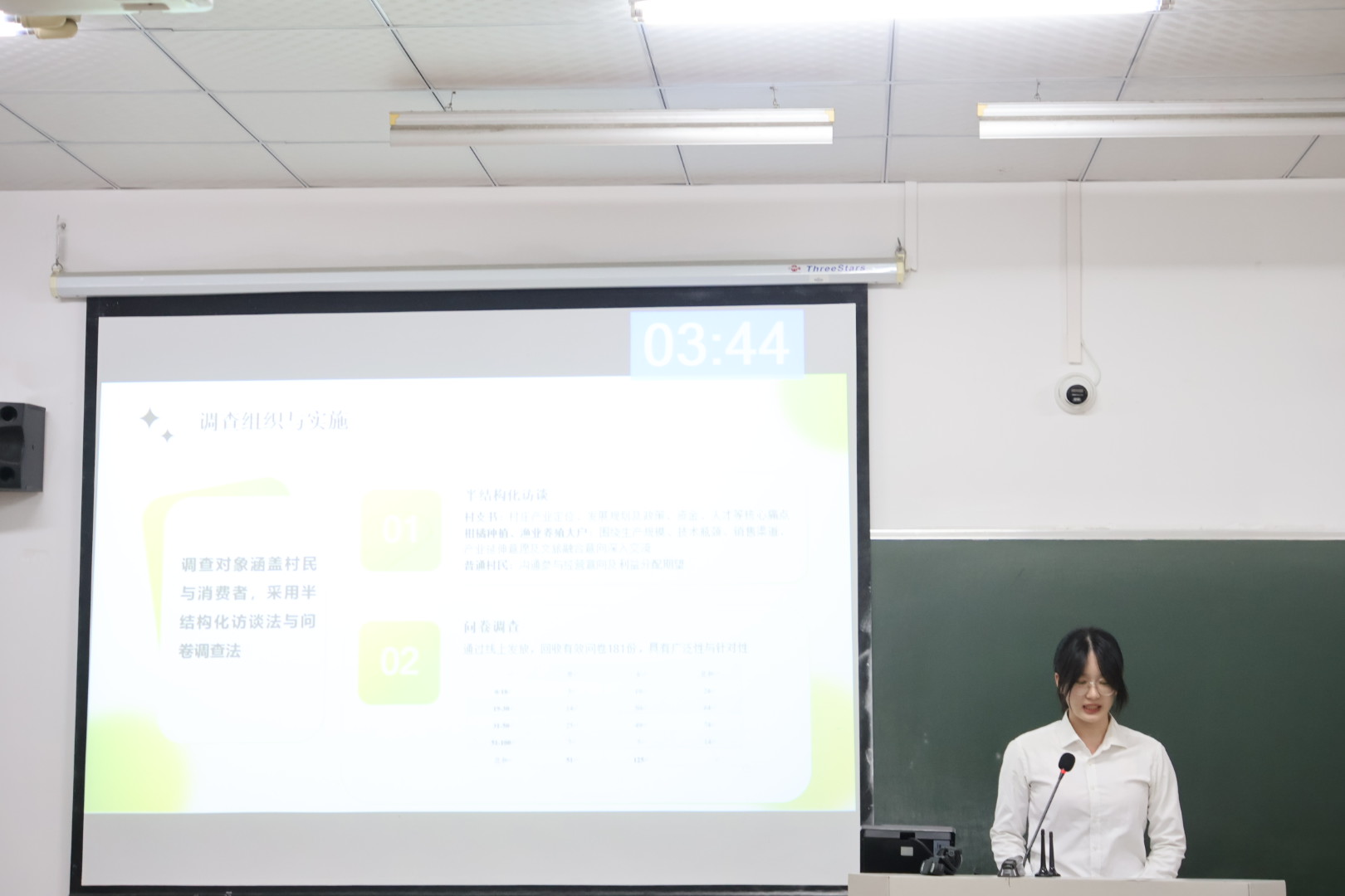 各团队有序开展成果汇报。12支实践调研团队通过精心制作的PPT、实地拍摄的视频等多元化形式,生动讲述了他们扎根乡野沃土的暑期社会实践故事。每一段鲜活的故事,都承载着当代青年的赤诚初心,更彰显着新时代学子的使命担当。