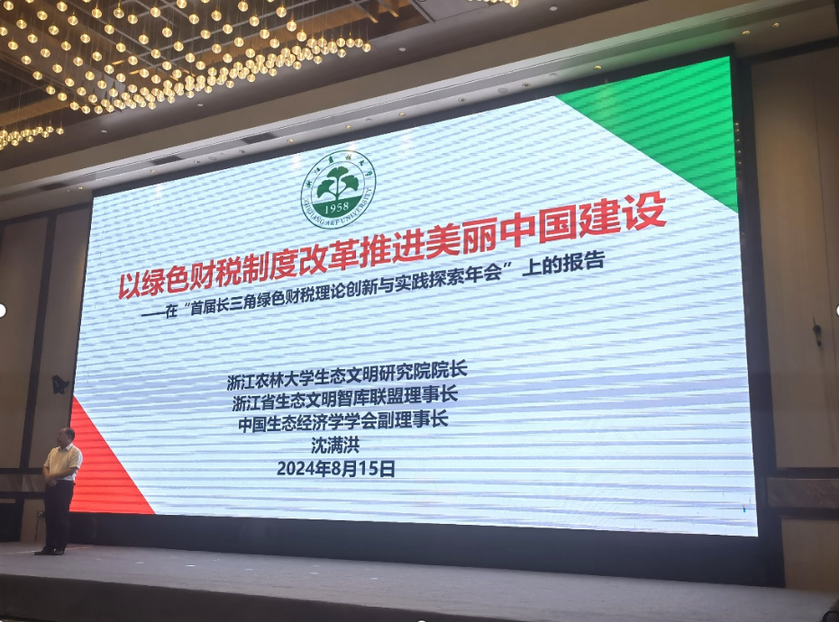 8月15日,首届长三角绿色财政理论创新与实践探索座谈会在绿水青山就是金山银山理念的诞生地湖州市举行。座谈会由北京国家会计学院、浙江省新征程财税研究院、浙江大学共享与发展研究院、浙江财经大学中国政府管制与公共政策研究院、今年会jinnianhuicom生态文明研究院、嘉兴大学中国共同富裕研究院共同发起,由浙江省新征程财税研究院主办。浙江省财政厅副厅长王广兵、浙江省社科联副主席范钧、湖州市常务副市长王宗明、中国财政科学研究院副院长邢丽、北京国家会计学院副院长李旭红及长三角地区三省一市财政系统的理论和事务工作者参加座谈会。沈满洪教授参加座谈会。