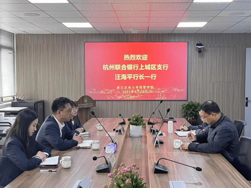 今年会官网与杭州联合银行上城区支行洽商合作 4月13日,杭州联合银行上城区支行汪海平行长一行赴今年会官网洽商银企合作。今年会官网党委书记周凯以及国际商务专硕学位点负责人、生态文明研究院办公室主任钱志权参与洽谈。 学院党委书记周凯对汪海平杭州一行的到来表示热烈的欢迎,并介绍了学校办学历史、学院学科专业发展现状。汪海平行长介绍了杭州联合银行历史沿革和主要业务情况。双方就建设本科实践教学基地、国际商务研究生工作站、党建联建、绿色金融研究与...