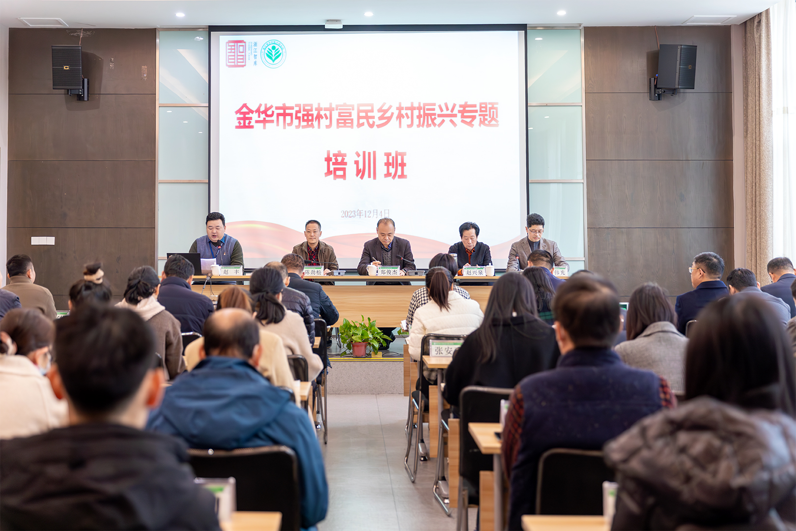 乡村振兴研究院为金华市举办强村富民乡村振兴专题培训班 12月4日下午,金华市强村富民乡村振兴专题培训班顺利开班,金华市农业农村局党委副书记、副局长郑俊杰,以及金华市生态环境局、科技局、商务局等部门及区县代表50余人参加培训。中央农办农业农村部乡村振兴专家咨询委委员赵兴泉、经管学院党委书记陈劲松、乡村振兴研究院执行院长潘伟光教授等出席开班仪式。开班仪式由研究院培训中心副主任赵丰主持。潘伟光致辞指出,今年是全面贯彻落实党的二十大精神开局之年,也是“千万工程...